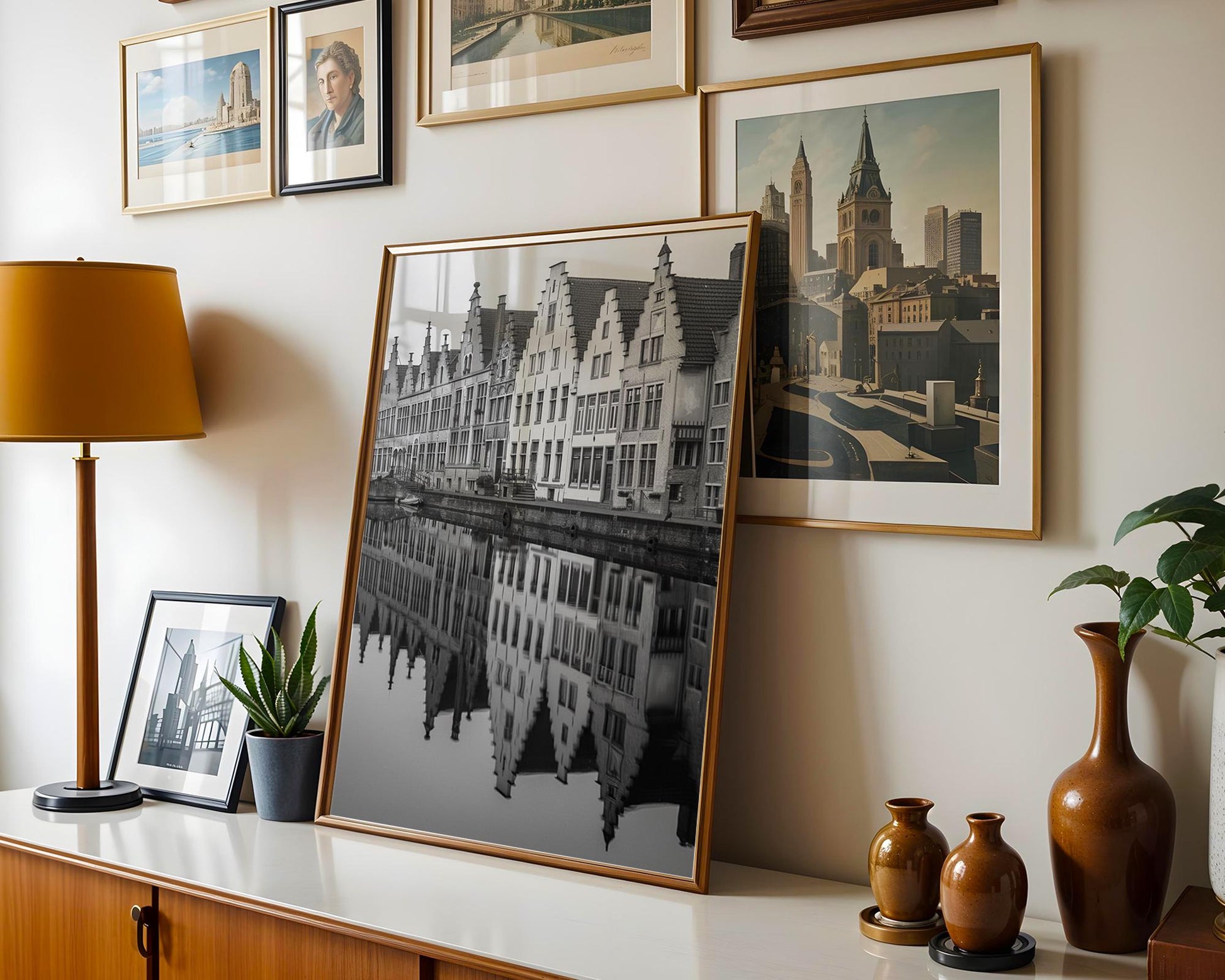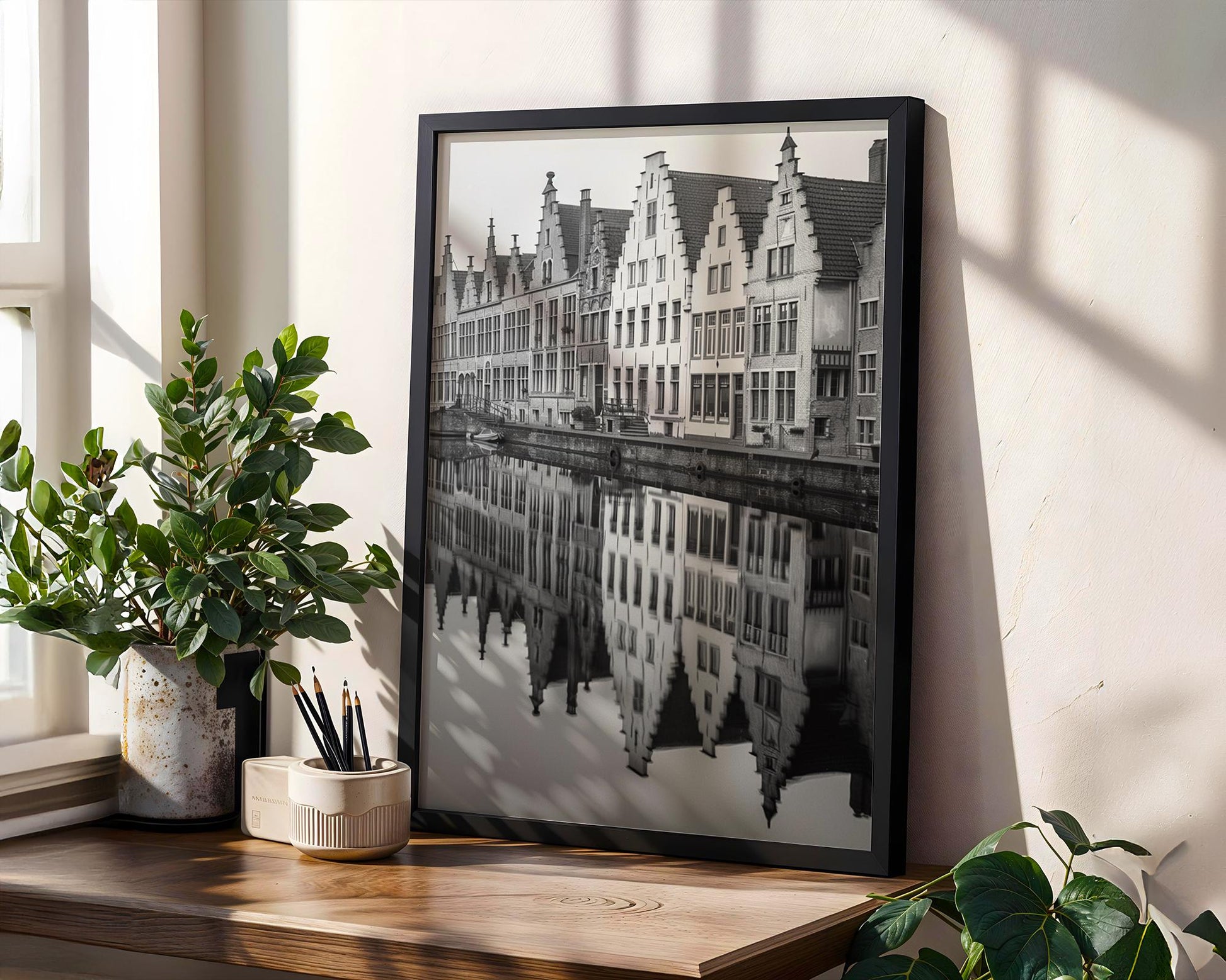 World Landmark | Bruges Canal Black and White Photography Print | Belgium Architecture Wall Art