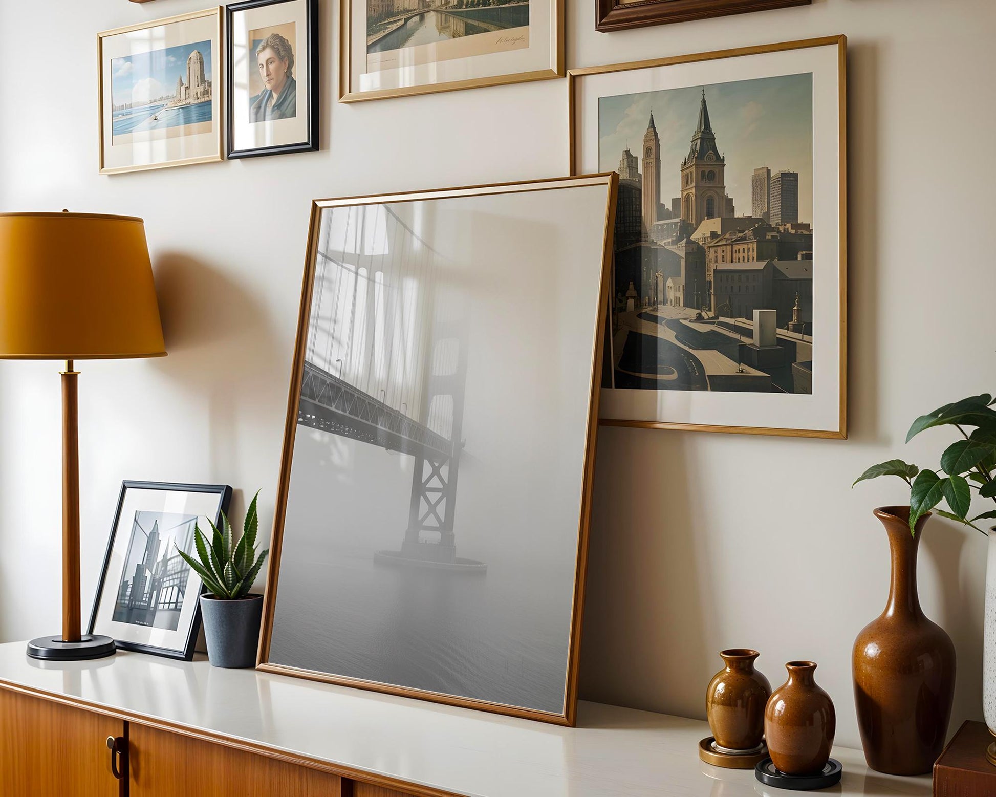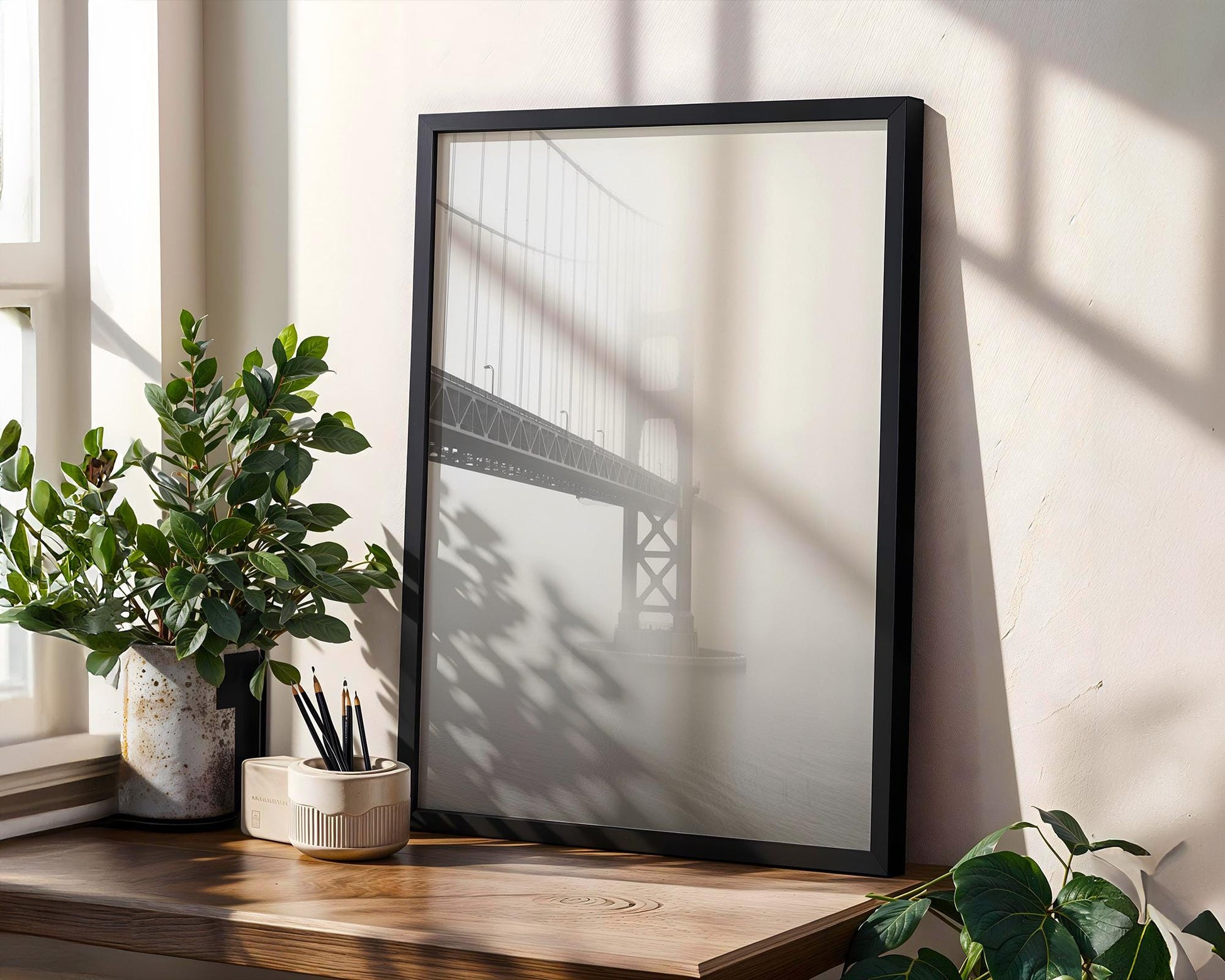 World Landmark | Golden Gate Bridge Fog Print | San Francisco Black and White Photography