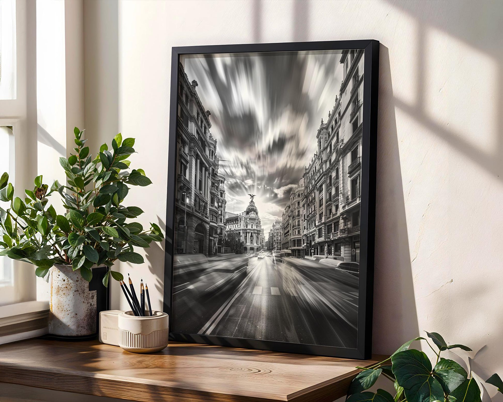 World Landmark | Madrid Gran Vía Black and White Photography Print | Spain Urban Architecture