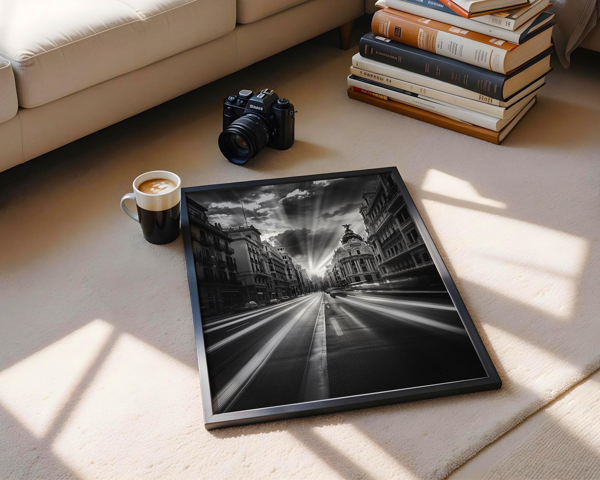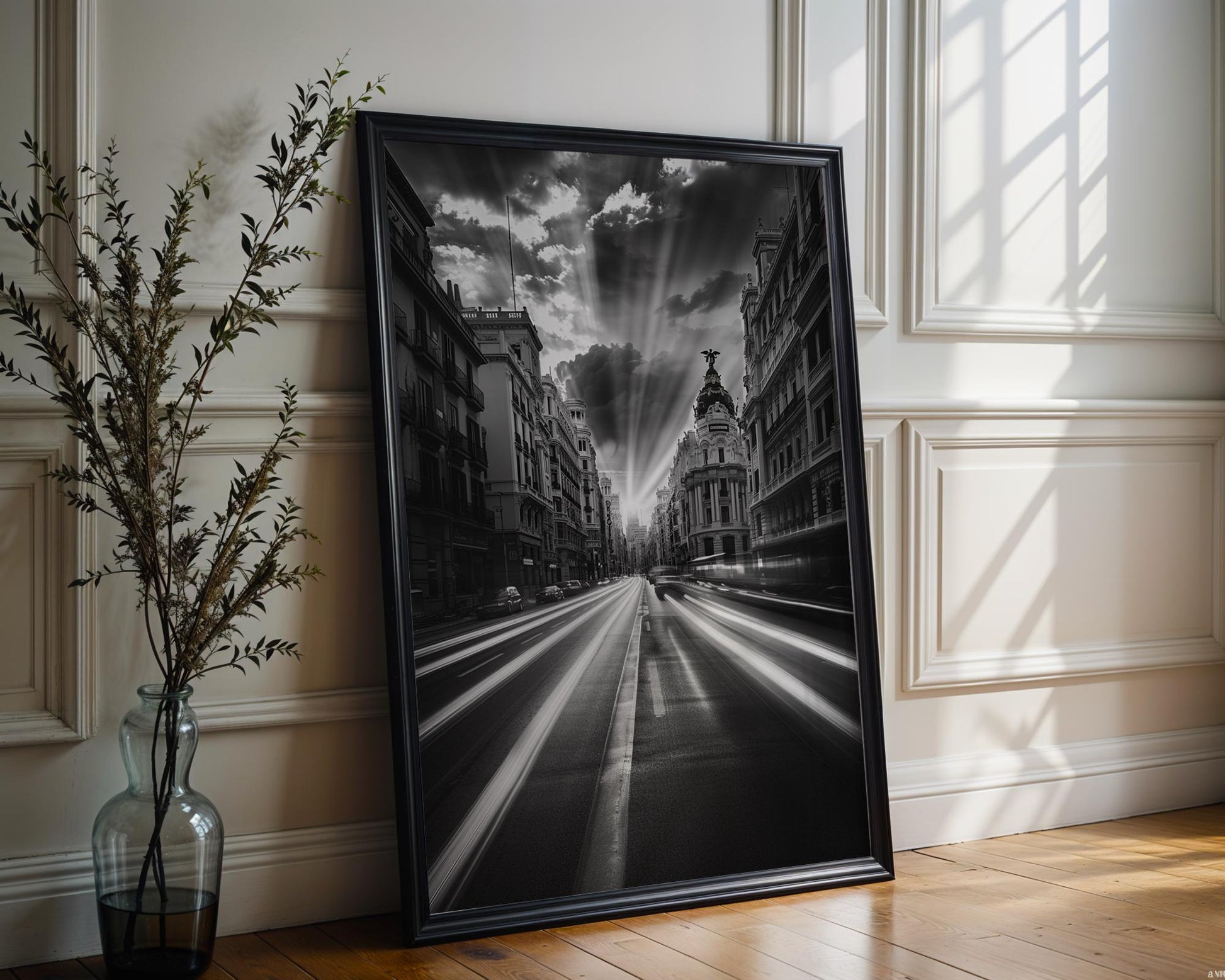 World Landmark | Madrid Gran Vía Photography Print | Black and White Spain Architecture Wall Art