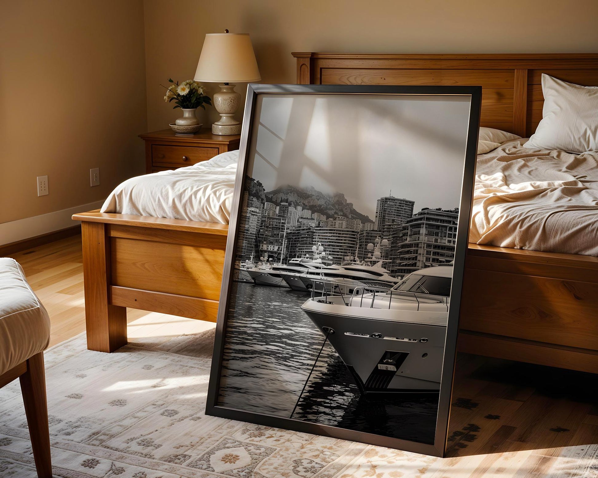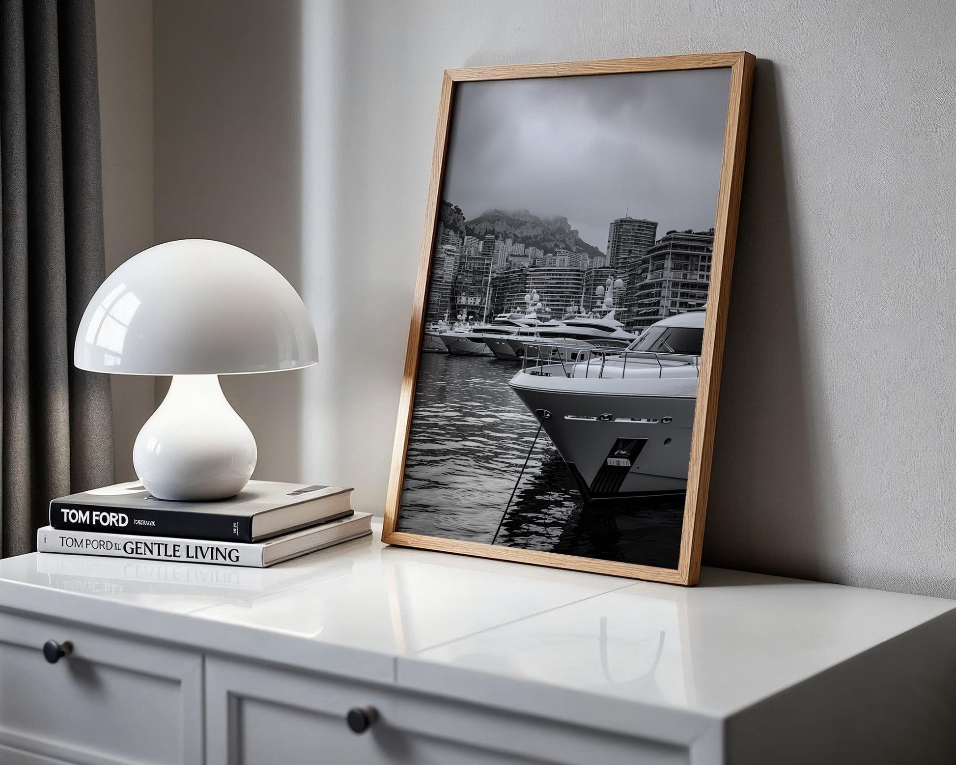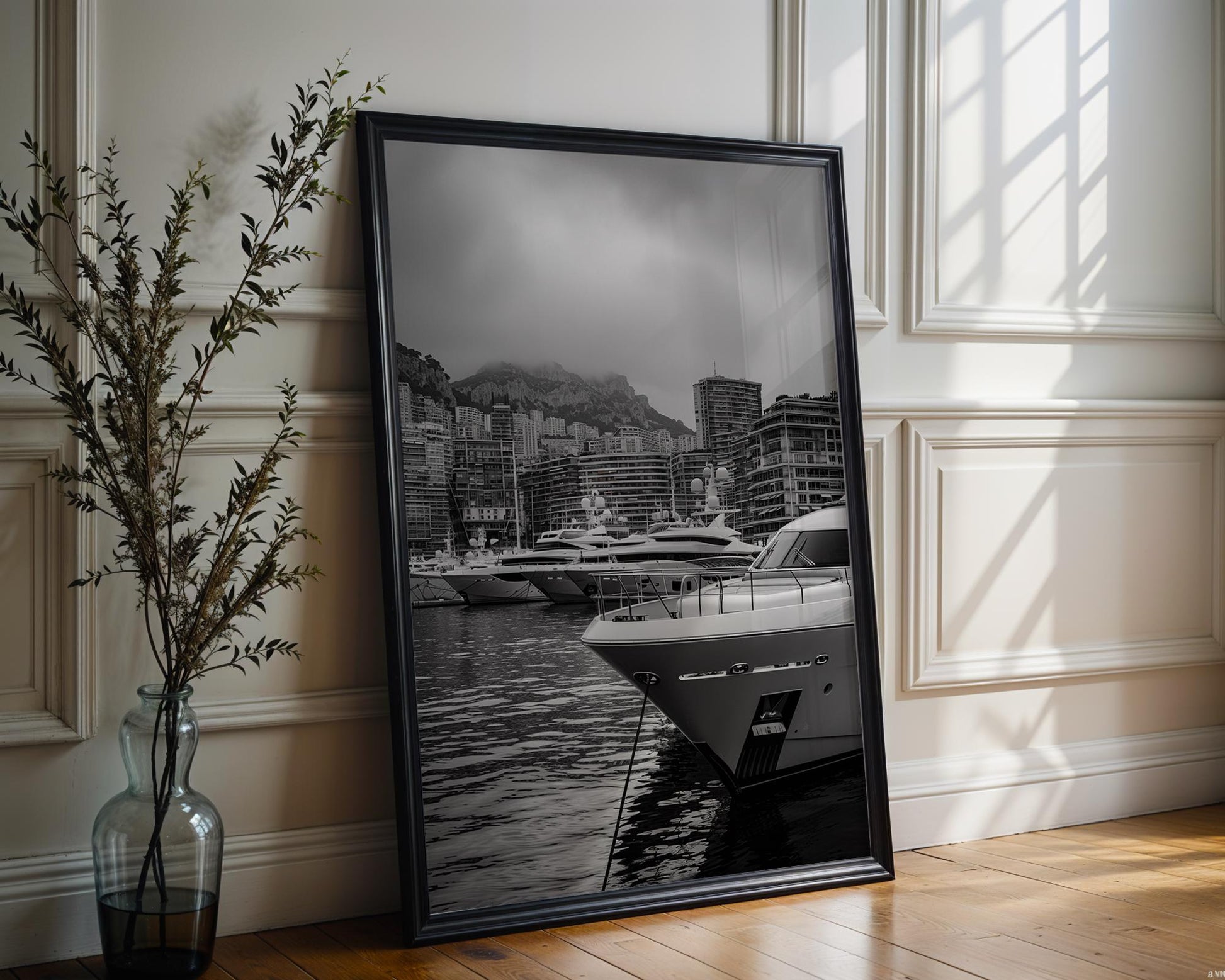World Landmark | Monaco Harbor Black and White Photography Print | Modern Yacht Marina Art