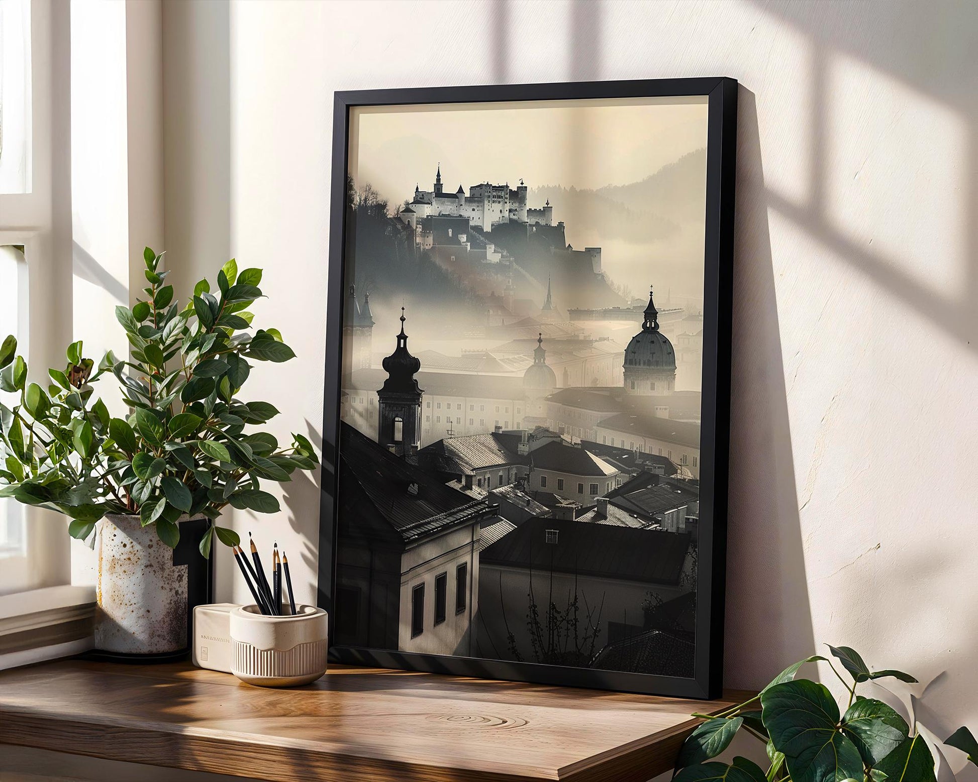 World Landmark | Salzburg Fortress Print | Misty Cityscape Photography, European Wall Art