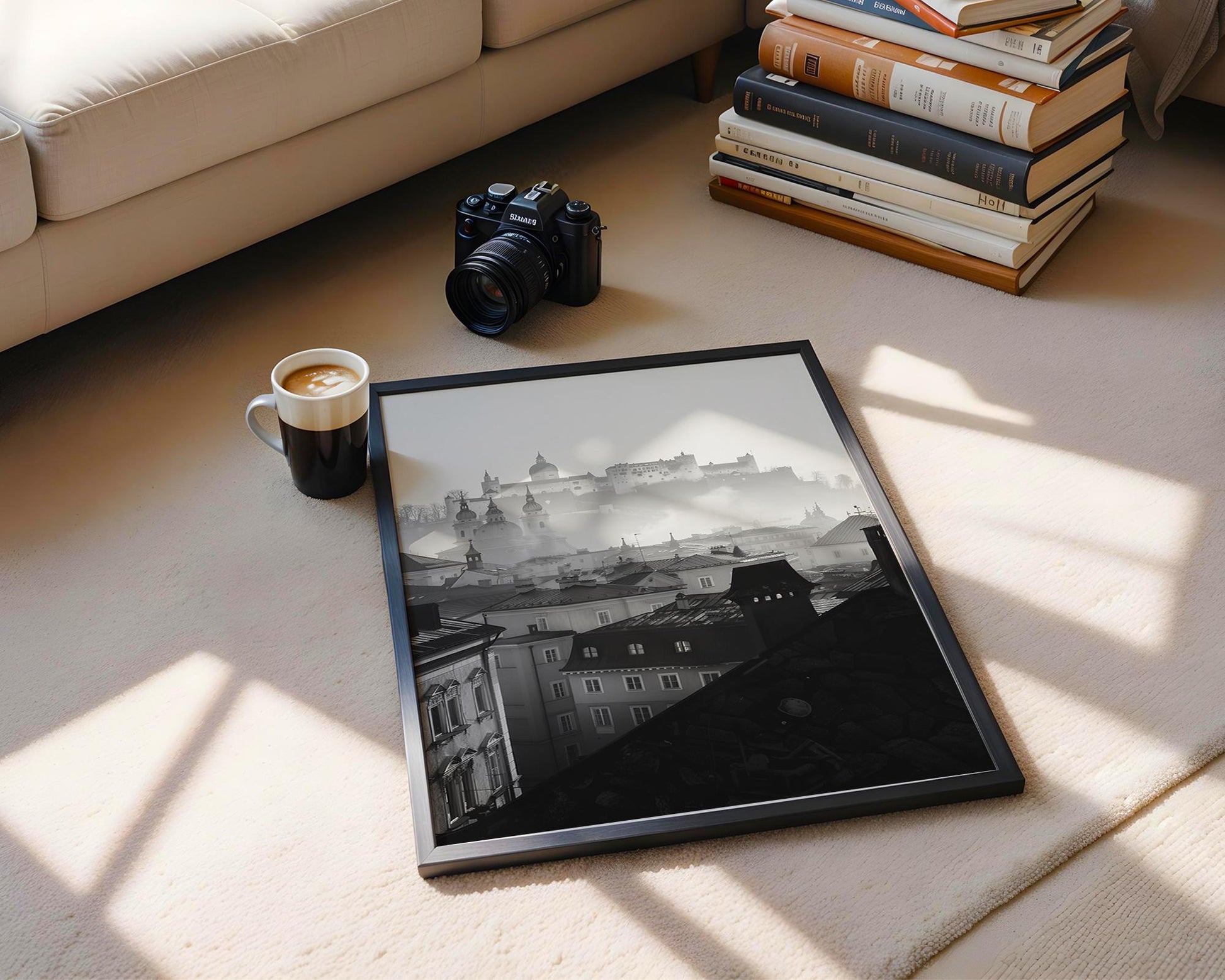 World Landmark | Salzburg Skyline Print | Black and White European Architecture