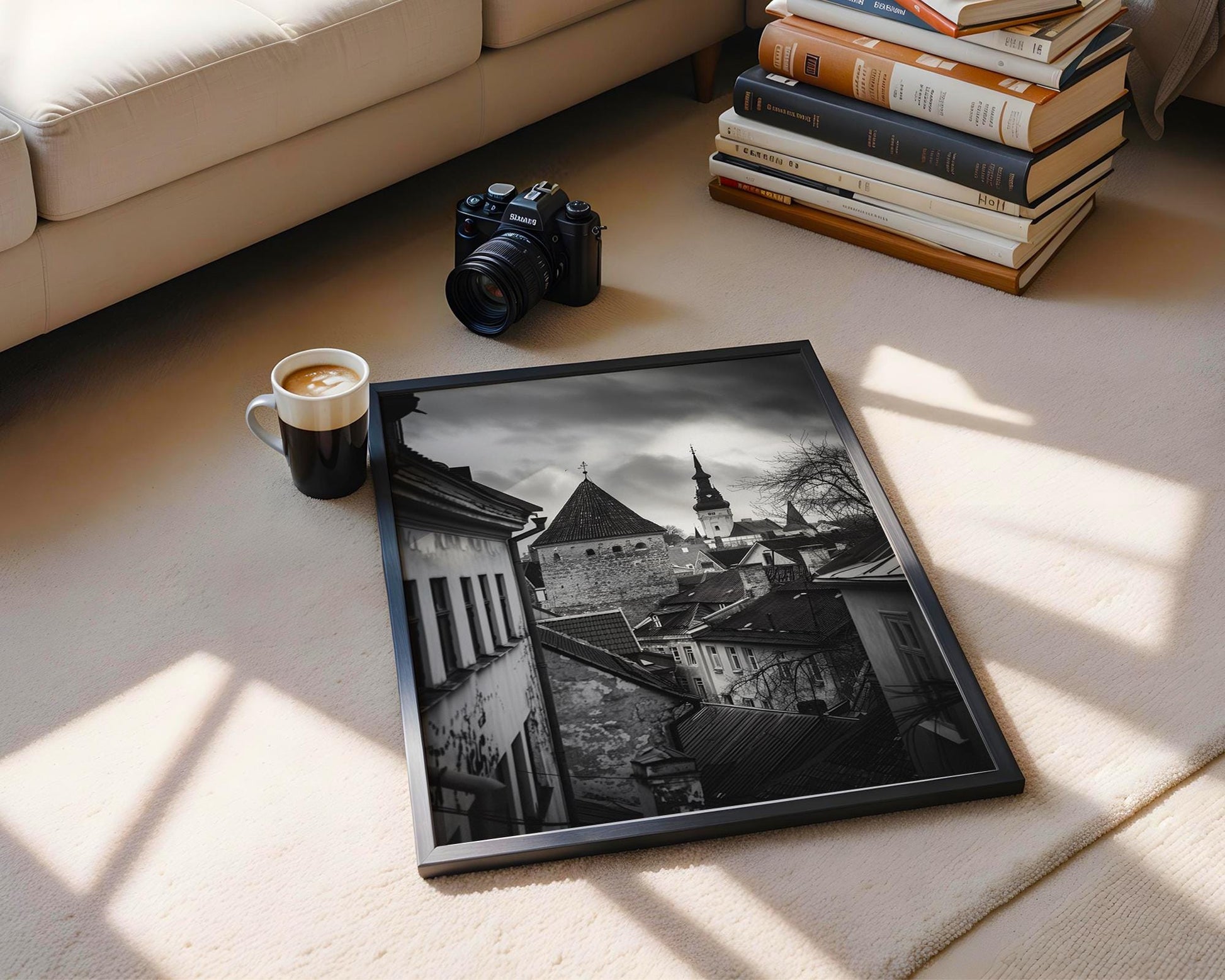World Landmark | Tallinn Old Town Photography Print | Black and White Estonia Architecture
